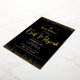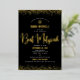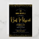 Be proud, rejoice and showcase this milestone of your favourite Bat Mitzvah! Send out this stunning, modern, sophisticated, personalised invitation for an event to remember. Graphic real gold foil calligraphy script, bold type, Star of David, and confetti overlay a rich, dramatic, black background. A faux gold Star of David overlays a faux metallic gold ombre background on the back. Personalise the custom text with your Bat Mitzvah’s name, date, and venue information. Guaranteed to add stylish fun to her special occasion!