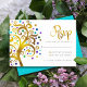 Be proud, rejoice and showcase this milestone of your favourite Bat Mitzvah! Include this graphic faux gold foil tree with sparkly turquoise, teal, purple and blue Star of David and dot “leaves” on a white background, personalised RSVP insert card for your event. A tiny, light turquoise blue Star of David pattern overlaying teal blue is on the back. Personalise the custom text with the “reply by” date. Guaranteed to add stylish fun to her special occasion!
