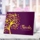 Make sure your favourite Bat Mitzvah shows her appreciation to all who supported her milestone event! Send out this sophisticated, personalised thank you card! This graphic faux gold foil tree with sparkly pink, orange, and red Star of David and dot “leaves” overlays a rich, purple burgundy background. Personalise the custom text with your Bat Mitzvah’s name. Guaranteed to add a stylish touch to her correspondence! Matching and coordinating invites, address labels, stickers, place cards, table numbers, napkins, albums, and other Bat Mitzvah goodies are also available in this trendy and special collection.