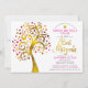 Bat Mitzvah Pink Gold Foil Script Tree of Life Invitation