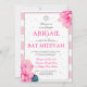 Bat Mitzvah Pink Roses Hebrew Silver Invitation