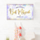 Be proud, rejoice and showcase this milestone of your favourite Bat Mitzvah! Hang up this stunning, modern, stylish, personalised banner to add to her special day. Sparkly, gold faux foil calligraphy script and glitter dots overlay a soft purple watercolor background. Personalise the custom text with your Bat Mitzvah’s name and date or custom message. Guaranteed to preserve cherished memories of her special occasion! Matching and coordinating invites, address labels, stickers, keepsake binders, and other Bat Mitzvah goodies are also available in this trendy and special collection.
