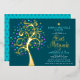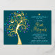 Be proud, rejoice and showcase this milestone of your favorite Bat Mitzvah! This graphic real gold foil tree with sparkly turquoise, teal, purple and blue Star of David and dot “leaves” on a rich dark teal blue background is the perfect invitation for this special occasion. A tiny, teal blue Star of David pattern overlaying turquoise blue is on the back. Personalize the custom text with your Bat Mitzvah’s name, Hebrew name, date, and venue information. Choice of gold, rose gold, or silver real foil. Guaranteed to add stylish fun to her special occasion!