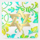 Bat Mitzvah Turquoise Yellow and Green Damask Square Sticker