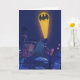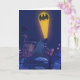 This evocative graphic captures Batman as he oversees Gotham City under the glow of the iconic Bat-Signal. Set against a dramatic night sky, the vibrant yellows and blues create a stark contrast, highlighting the city's sprawling, lit-up skyline and the silhouette of the caped crusader standing vigilant on a rooftop. The Bat-Signal cuts through the darkness, serving as a symbol of hope and a call to action, signalling Batman's unending commitment to safeguarding his city. The composition's dynamic colours and dramatic perspective not only draw attention to Batman's heroic stature but also encapsulate the perpetual struggle between light and shadow in Gotham. This artwork is a powerful portrayal of Batman’s role as the guardian of Gotham, watching over it from the shadows, ever ready to confront the chaos that lurks below.