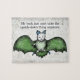 Bat With A Bad Back features a medically challenged bat with a bad back who cannot abide by the "upside-down thing" anymore. In white, green and blue.