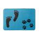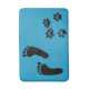 Human and cat foot prints. Large human prints on left and cat paw-prints in lower right corner. Front paws have seven toes (polydactyl). Background colour (blue) may be customised.