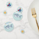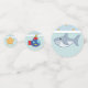 Splash into some fun with this bath time themed design featuring a smiling shark and big round sub floating along in a bathtub that transitions from the mundane blue tile wall, decorated with orange starfish, to a sandy ocean bottom mimicking the fanciful imaginings of a child playing with toys. The shark, sub, and a starfish are split between the large, medium, and small pieces of confetti to create a cute table decoration for your baby shower. This confetti will match with any other Bath Time Fancies product so that you can easily make your event as coordinated as you desire.