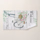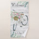 The design Welcome Spring Bicycle is a beautiful spring design including "farmhouse decor" wood plank background and then a bicycle with a basket filled with peonies and roses and a hint of Ivy. There is text of Welcome to Our Place on the design.