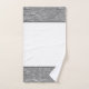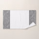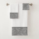 The elegant Bath towel set is soft Grey. It is trimmed with a border pattern that looks like flowing water. This pattern comes from actual handmade ceramic tile made for the bathroom. The pattern is called "Flow". It has a wet look due to the glossy glaze that was used on the tile. Look for the tile in my ceramic tile category. You can tile your bathroom with them. Design by Oregon Tile maker, Fay Jones Day.