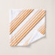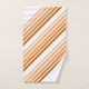 Orange lines in varying five shades. Dark to light, bottom to top. Three sets of stripes are placed diagonally from top to bottom on each piece.