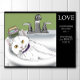 White cat sitting in bathroom sink. Love is not turning the water on.... even thought you really want to.