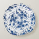 Batik Blue and White Illustrated Floral Pattern Round Cushion