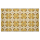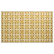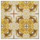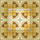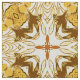 Fabric in a four point mandala pattern,.with a soft batik effect, in shades of mustard gold and light yellow, accented with brown