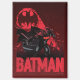 This graphic features a dramatic portrayal of Batman, cast against a stark, red backdrop that echoes Gotham's perilous atmosphere. The piece centres on Batman’s silhouette, emerging from the darkness with an imposing stance, underscoring his role as the guardian of the night. The bat signal looms large in the sky, calling upon the Dark Knight to save Gotham, the city he vows to protect. Rain streaks down the artwork, adding a layer of gritty realism and enhancing the sense of a never-ending battle against crime. Red bats flutter from the emblem, suggesting the ever-present threat that pervades Gotham. This artwork captures the essence of Batman’s enduring vigil, marked by sacrifice and relentless courage.