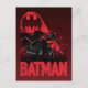 This graphic features a dramatic portrayal of Batman, cast against a stark, red backdrop that echoes Gotham's perilous atmosphere. The piece centres on Batman’s silhouette, emerging from the darkness with an imposing stance, underscoring his role as the guardian of the night. The bat signal looms large in the sky, calling upon the Dark Knight to save Gotham, the city he vows to protect. Rain streaks down the artwork, adding a layer of gritty realism and enhancing the sense of a never-ending battle against crime. Red bats flutter from the emblem, suggesting the ever-present threat that pervades Gotham. This artwork captures the essence of Batman’s enduring vigil, marked by sacrifice and relentless courage.