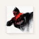 This striking artwork captures Batman as he emerges from the shadows, reflecting his dual nature as both a symbol of hope and an avenger cloaked in darkness. The graphic utilises a stark contrast between the deep blacks and vivid reds to emphasize Batman’s intense and complex persona. The left side shows Batman partially obscured by a smoky, textured effect, symbolising the mystery and the enigmatic qualities of his character. The right side reveals his determined profile in clear, bold colours, highlighting his unwavering resolve to fight crime. This artistic depiction combines modern design elements with classic superhero imagery, creating a powerful visual representation of Batman’s ceaseless vigil over Gotham City.