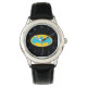 The leather band makes it seem like an “older kids” watch. Easy to read the time. Clear printing and image.