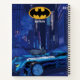 This graphic vividly captures Batman speeding through the neon-lit streets of Gotham City in his iconic Batmobile. Above him, the Bat-Signal shines brightly against a deep blue sky, calling him to duty. The artwork uses a striking colour palette of blues and vibrant yellow highlights, emphasizing the high-speed energy and the futuristic aesthetic of the Batmobile. The urban landscape of Gotham is rendered with bold, exaggerated forms, giving the scene a dynamic and slightly surreal feel. This illustration not only celebrates Batman's role as the guardian of Gotham but also his reliance on technology and cunning to maintain order in a city that never sleeps. The image is a thrilling representation of Batman in action, perfectly blending elements of danger, heroism, and adventure.