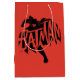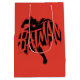 This dynamic graphic captures Batman in mid-action, rushing forward against a vivid, all-red backdrop. The stark contrast of the black silhouette against the crimson background creates an intense and urgent atmosphere, highlighting Batman's relentless pursuit of justice. The graphic features the word "BATMAN" in large, bold letters that seem to emerge from beneath him, adding to the movement and energy of the scene. This design is both striking and minimalist, emphasizing the iconic nature of the Dark Knight with a modern twist. It encapsulates the essence of Batman's character: his determination, his strength, and his ever-present mission to defend Gotham from the shadows. This piece is perfect for fans who appreciate bold and graphic interpretations of classic superhero icons.