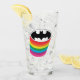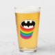 DC Pride | Batman's iconic logo with layers of rainbow colors projected behind it.