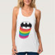 DC Pride | Batman's iconic logo with layers of rainbow colours projected behind it.