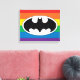 DC Pride | Batman's iconic logo with layers of rainbow colours inside it.