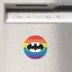 DC Pride | Batman's iconic logo with layers of rainbow colors inside it.