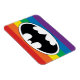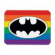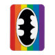 DC Pride | Batman's iconic logo with layers of rainbow colors inside it.