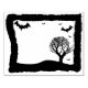 Bats and tree landscape silhouette art stamp