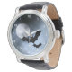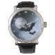Wrist Watch featuring a full moon and flying bats in shades of misty blue and grey.