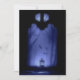 Spooky Gothic style Halloween personalised invitations show bats flying in the fog on a glowing blue moonlit night with a mysterious glowing lantern as seen through creepy stone gothic looking entryway.