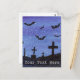 A watercolor landscape of bats in flight over a cemetery at night adorn this customisable postcard!