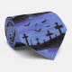 A tiny watercolor landscape of bats in flight over a cemetery at night adorns this spooky Halloween tie!