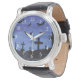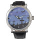 A tiny watercolor landscape of bats in flight over a cemetery at night adorns this spooky Halloween watch!