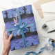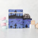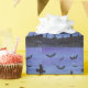 A tiny watercolor landscape of bats in flight over a cemetery at night adorns this spooky Halloween wrapping paper.