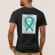 Batten Disease awareness uses a teal ribbon for its cause awareness. The shirt art features a teal awareness ribbon angel painting. The awareness angel t-shirt message notes "Batten Disease Awareness". There is a large image on the back of the shirt and a smaller picture on the front of the shirt. The teal awareness angel ribbon art apparel can be customised with personalised messages to make great cause event clothing for fundraiser shirts, group team walk shirts, awareness tshirt gifts, or other special cause events occasions for merchandise to help increase this cause's awareness in public for society's help in creating help & cause change.