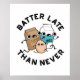 Batter Late Than Never Funny Baking Pun features a cute trio of flour, egg and milk running. Perfect pun gift for family and friends who love cute baking puns.