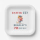 Throw your little sports fan a BASEBALL themed birthday party and offer your guests food and birthday cake with these cute baseball themed birthday paper plates. These baseball birthday plates feature an illustrated cat that is pitching a baseball. Fun, stylised text says "Batter UP!" Personalise with your child's name and the year of their birthday.