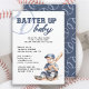 Batter Up Blue White Baseball Baby Shower Invitation