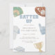 Batter up Preppy Blue Baseball Bow 4th Birthday Invitation