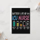 Humorous shift chart showing the battery life of an ICU nurse with colorful levels from start to double shift. Ideal for intensive care nurses who enjoy relatable workplace humor.