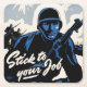 The morning mist hung heavy over the island, obscuring the distant thunder of naval guns and the roar of dive-bombing planes. Private First Class Thomas "Tommy" Miller, a young rifleman with the 1st Marine Division, crouched in his landing craft, his heart pounding in his chest. This was it. The invasion of Okinawa. - The ramp dropped, and the icy Pacific water surged into the craft. Tommy, along with his squad, scrambled onto the beach, the weight of their gear pulling them down. The air was filled with the screams of wounded men, the crack of rifle fire, and the explosions of grenades. Japanese machine gun fire raked the beach, cutting down anyone who lingered in the open. - Tommy and his squadmates pressed forward, seeking cover behind whatever they could find; a rock, a fallen palm tree, the body of a fallen comrade. The beach was a chaotic battlefield, a swirling maelstrom of death and destruction. The Japanese defenders, dug into well-fortified positions, fought with a fanatical intensity. - As they advanced, Tommy saw the devastation wrought by the naval bombardment and air strikes. Buildings were reduced to rubble, trees were stripped of their leaves, and the ground was pockmarked with craters. But the enemy was still there, lurking in the shadows, waiting to strike. - A sudden burst of machine gun fire erupted from a pillbox, spraying bullets across the beach. Tommy's squad leader, Sergeant Harris, was hit in the chest and fell to the ground. Tommy, along with the other survivors, rushed forward, hurling grenades into the pillbox. - The explosion was deafening, and for a moment, the machine gun fire ceased. But then, from the wreckage of the pillbox, a Japanese soldier emerged, firing wildly. Tommy, his heart pounding with adrenaline, raised his rifle and fired. The Japanese soldier fell to the ground, dead. - The beachhead was secured, but at a terrible cost. Tommy and his surviving squadmates were exhausted and battered, but they had done their duty. They had fought and won, inch by inch, against a determined and ruthless enemy. As the sun began to rise, casting its light over the ravaged island, Tommy knew that the battle was far from over. But for now, he and his comrades could rest, knowing that they had played their part in the liberation of Okinawa. - This image is government WPA art in public domain.