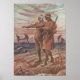 Postcard showing a soldier leading a blind and bandaged soldier through the battlefield. The back of the post card establishes the suitability of massage as a profession for blinded soldiers return from the front.