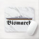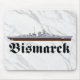 Mousepad with drawing of the famous German battleship Bismarck of world war II with the name of the ship written with fraktur letters.