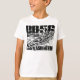 The t-shirt feels and looks great quality, a good thick cotton. It will be a little big for my son, but that means he will be able to wear it and not out grow it too soon. The print was as described on the order when personalised. True size, shape and colour T-shirt- thanks.