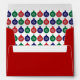 Christmas red envelopes with red, green and blue bauble pattern on the inside & flap.
