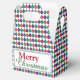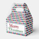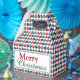Christmas gable favour box with a red, green and blue bauble pattern and "Merry Christmas" greeting.
