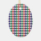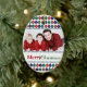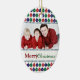 Oval Christmas tree photo ornament with red, green and blue bauble pattern and "Merry Christmas" text to personalise with your own photo and text.