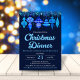 This Christmas dinner invitation features watercolor blue baubles across the top with pine needles and Christmas foliage against a navy blue background. You can customise all of the event details. On the back of the invitation is a pattern of blue watercolor Christmas ornaments. See the whole matching collection.
